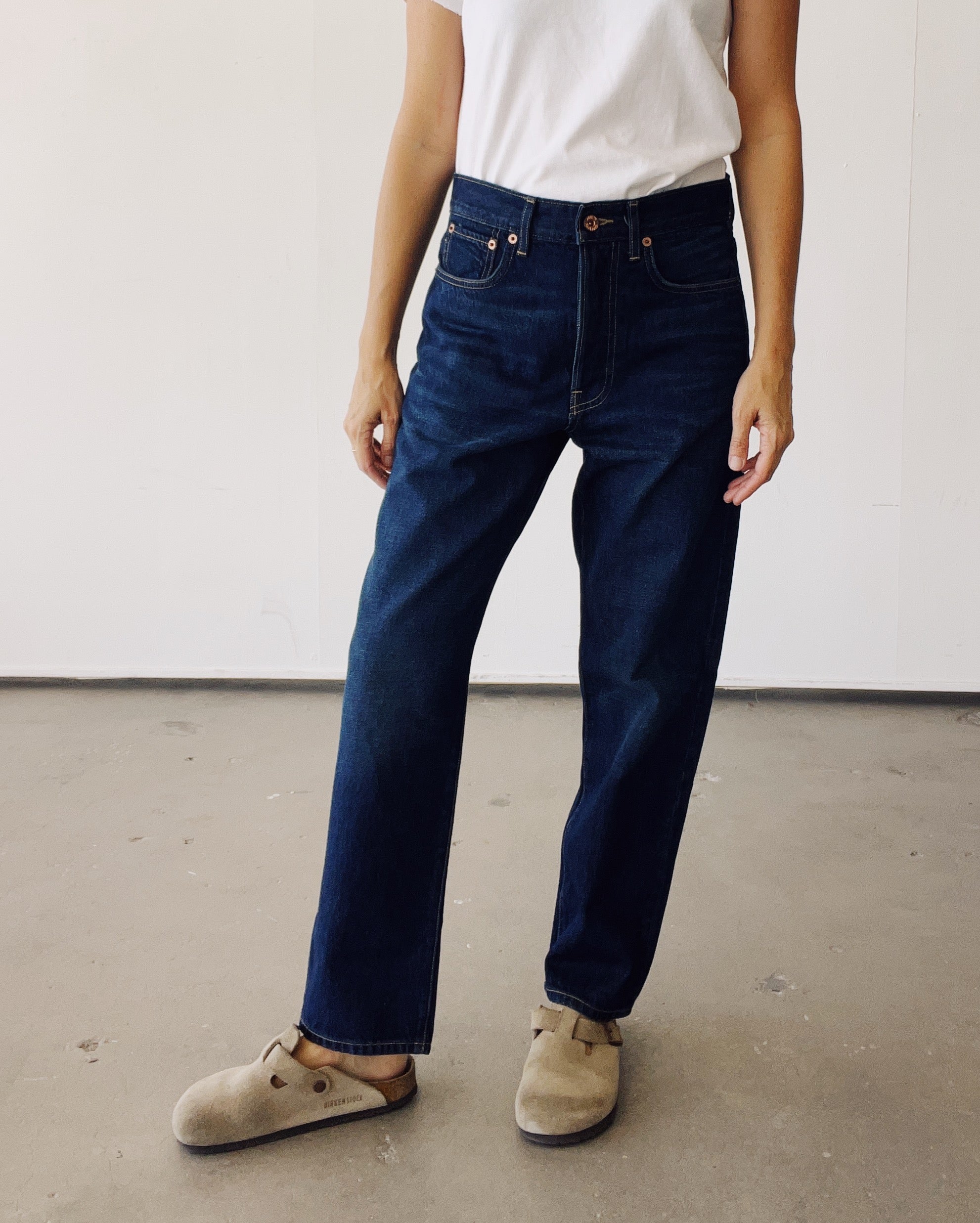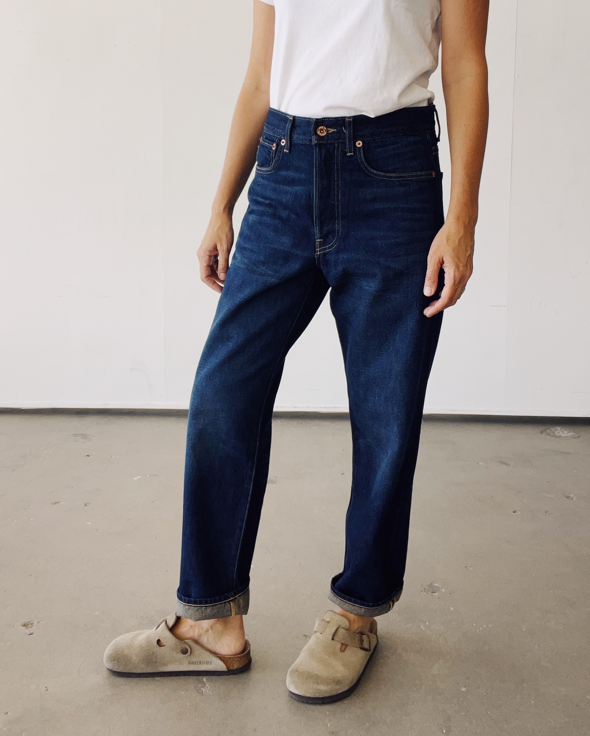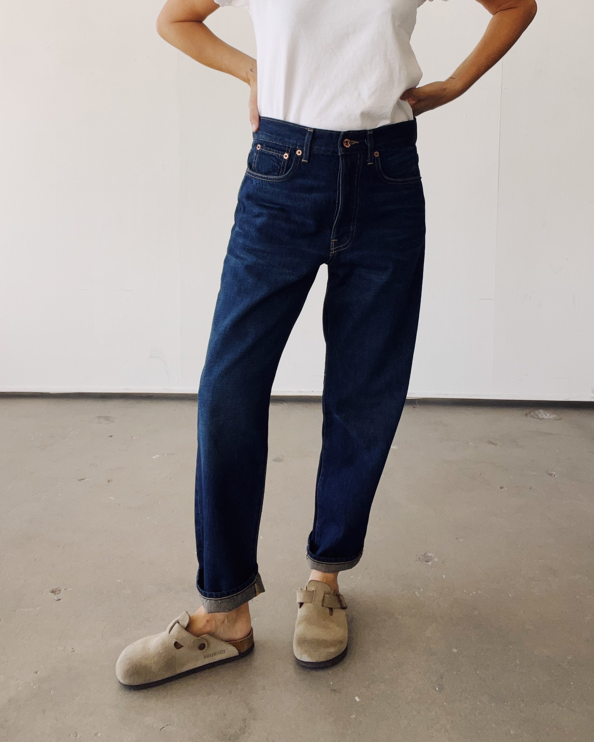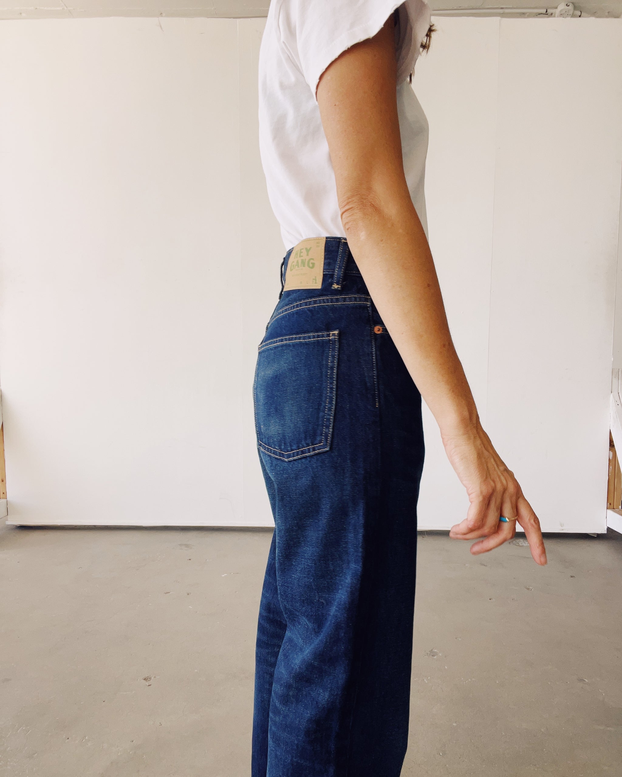Our most popular silhouette in the new Eddy Wash! This is your everyday all day kind of jean. Super easy and comfy with that perfect slouch. These are a mid rise relaxed jean designed to sit a little below your natural waist. A roomy leg that has a slight taper and hits right around your ankle. Great worn uncuffed or cuffed.