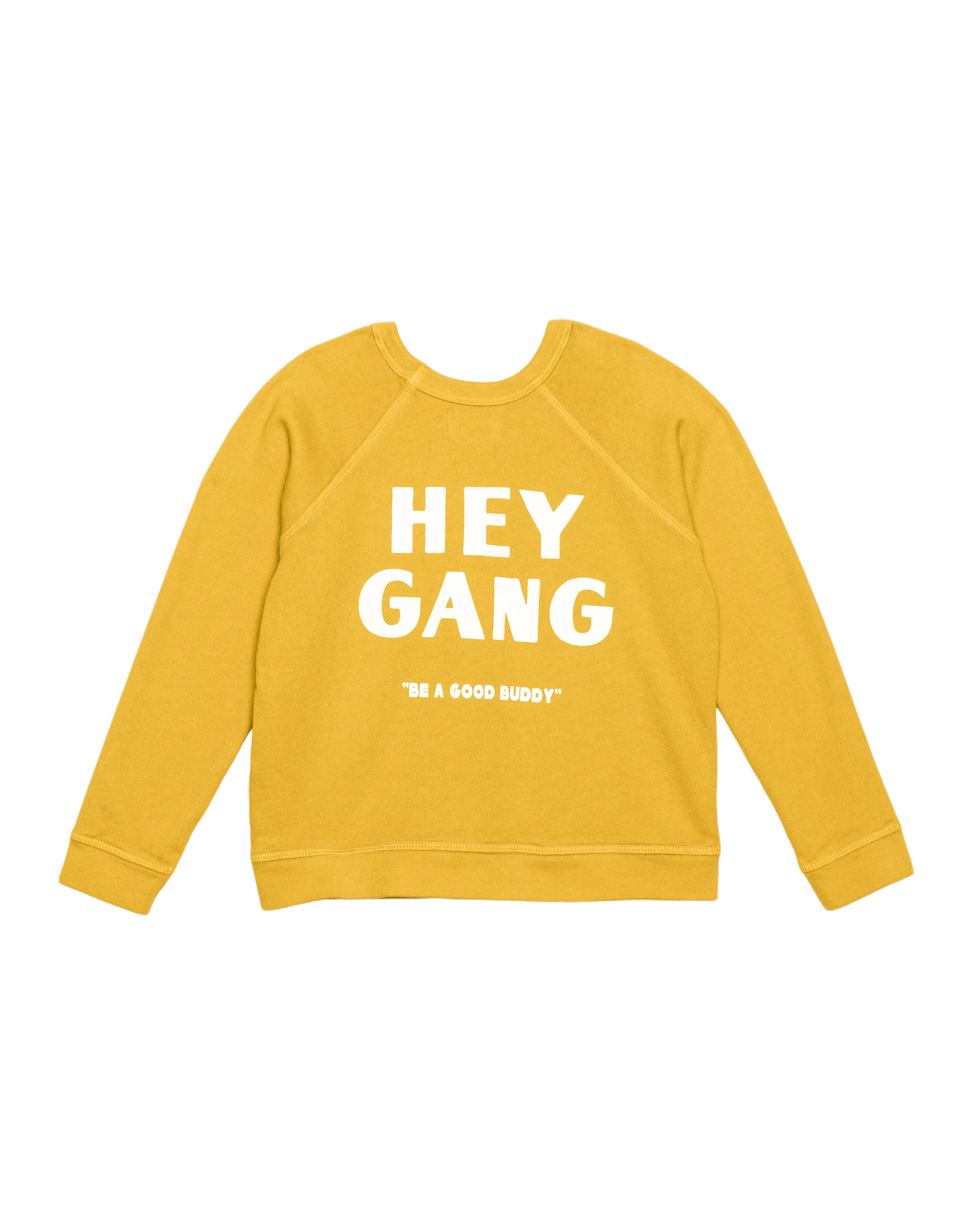 Our Hey Gang gear is here! Our classic raglan sweatshirt printed with our logo. Perfect for your little buddy!