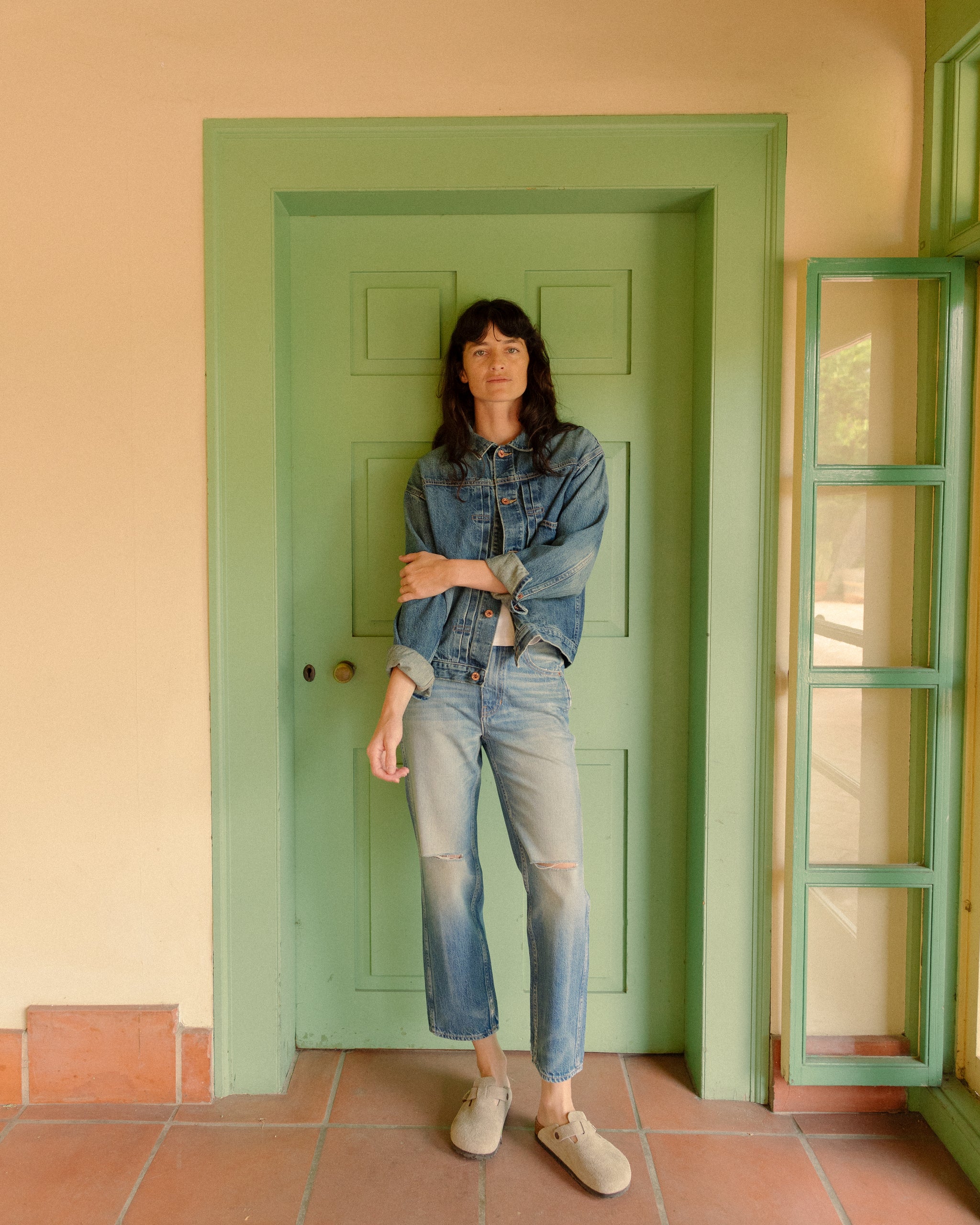 Our more fitted jean, with a high rise and a straight leg. Inseam will be 1" longer than photos. An easy everyday jean. Perfect for sneakers, sandals, or boots!