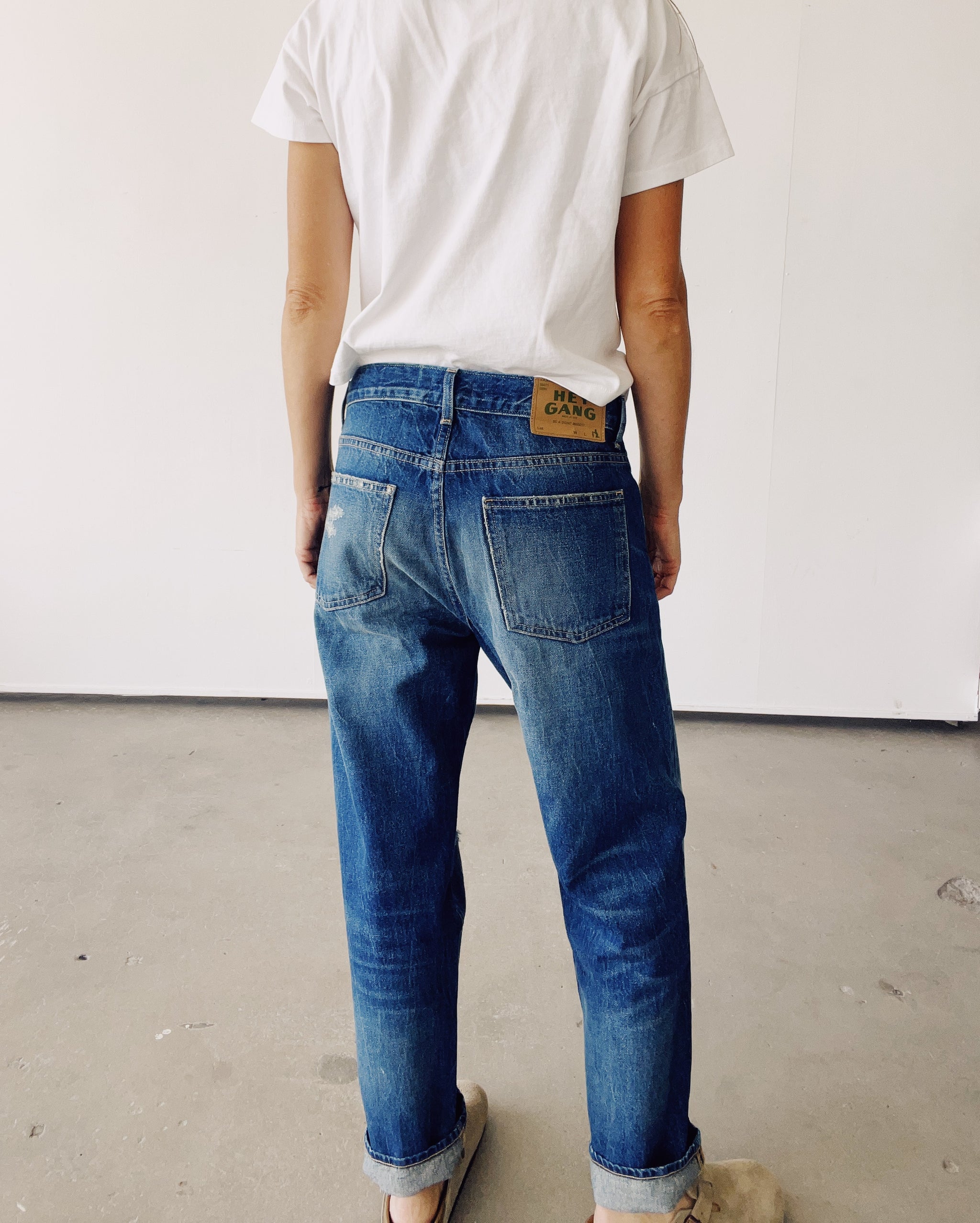 Our most popular silhouette and one that we've been searching for for years! This is your everyday all day kind of jean. Super easy and comfy with that perfect slouch. These are a mid rise relaxed jean designed to sit a little below your natural waist. A roomy leg that has a slight taper and hits right around your ankle. Great worn uncuffed or cuffed.