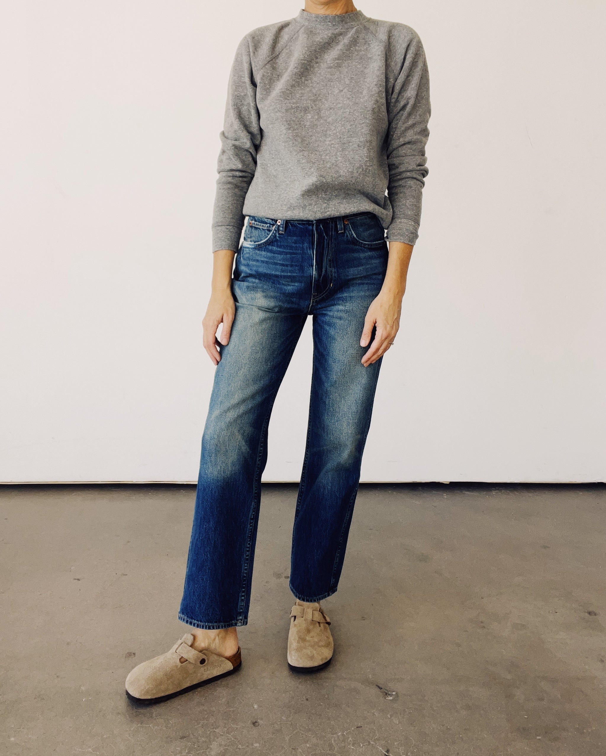 The High Rise Straight in our beloved Richman Wash. Our more fitted jean, with a high rise and a straight leg.