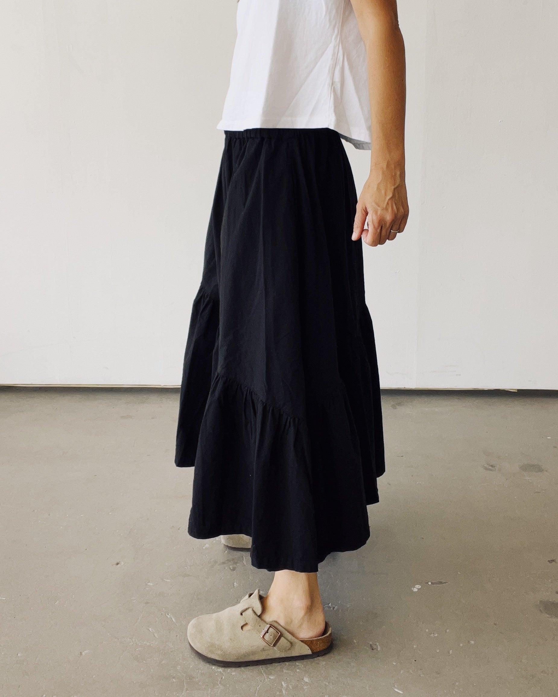 The Ranch skirt was designed with ease and versatility in mind. Made in 100% cotton milled in the US. Elastic waist and side pockets. A perfect closet staple to have forever.