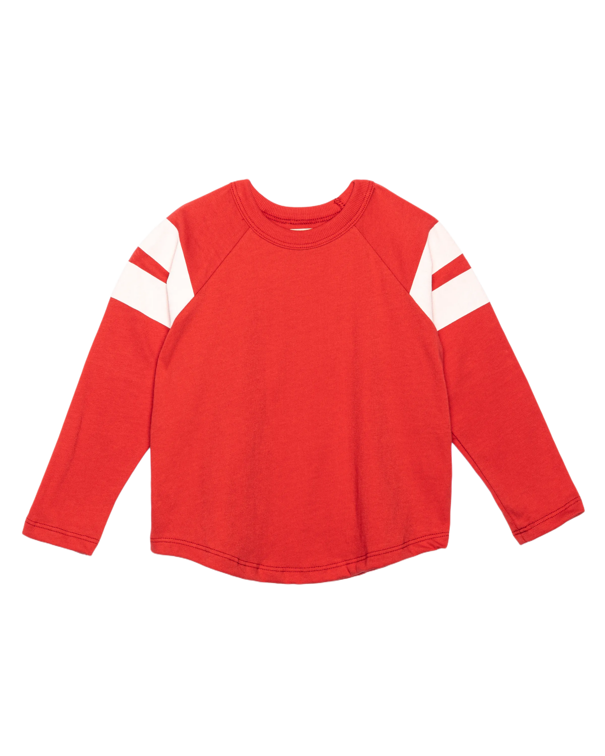The Kids Football Jersey Red $48.00 12/18 - $48.00 18/24 - $48.00 2/3 - $48.00 4/5 - $48.00 6/7 - $48.00 8/9 - $48.00 10/11 - $48.00 Quantity This variant is currently sold out The Kids football jersey in red. An oversized long sleeve tee with baseball hem and printed stripes. A classic vintage look. 100% Cotton Made in LA