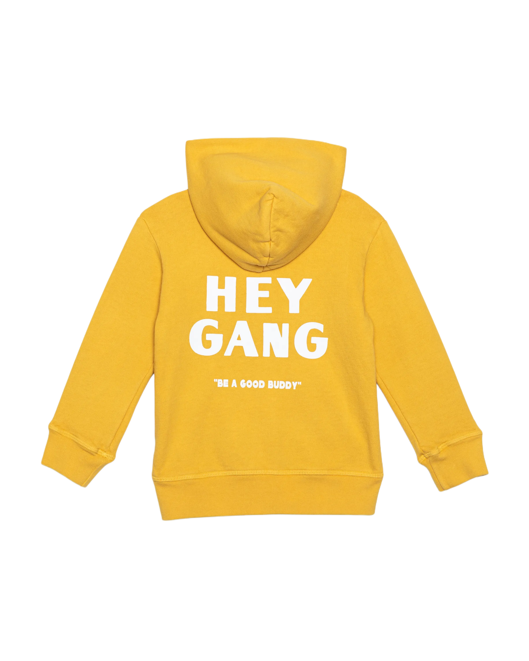 Our french terry Kid's Printed Zip Hoodie in Marigold - including Store Address. A perfect staple for your kiddos wardrobe, super soft and cozy! Customize with a name or icon to make it even more special!