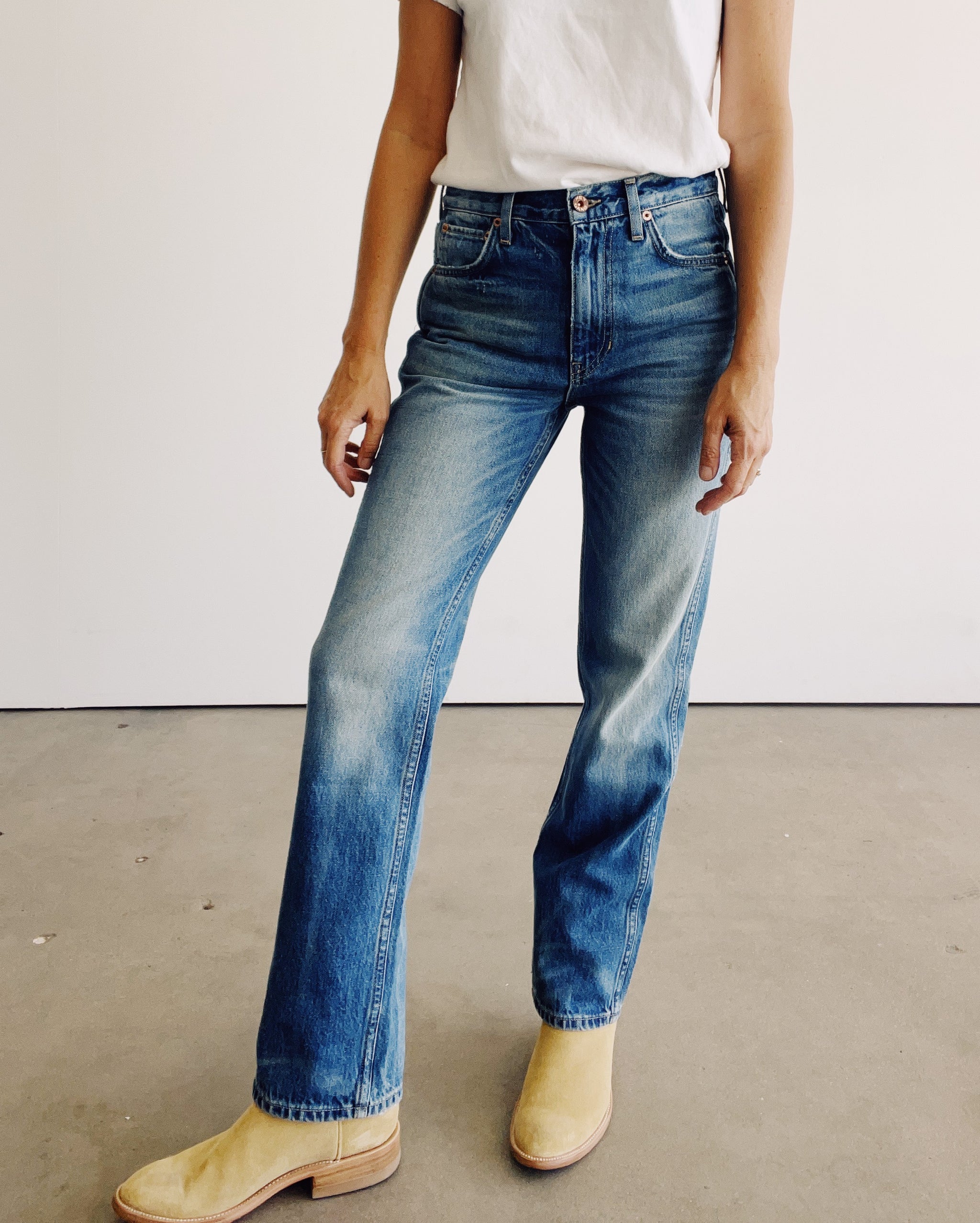 Our more fitted jean, with a high rise and a straight leg. An easy everyday jean. Perfect for sneakers, sandals, or boots!